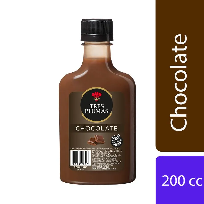 LICOR DE CHOCOLATE TRES PLUMAS PETACA 200 CC